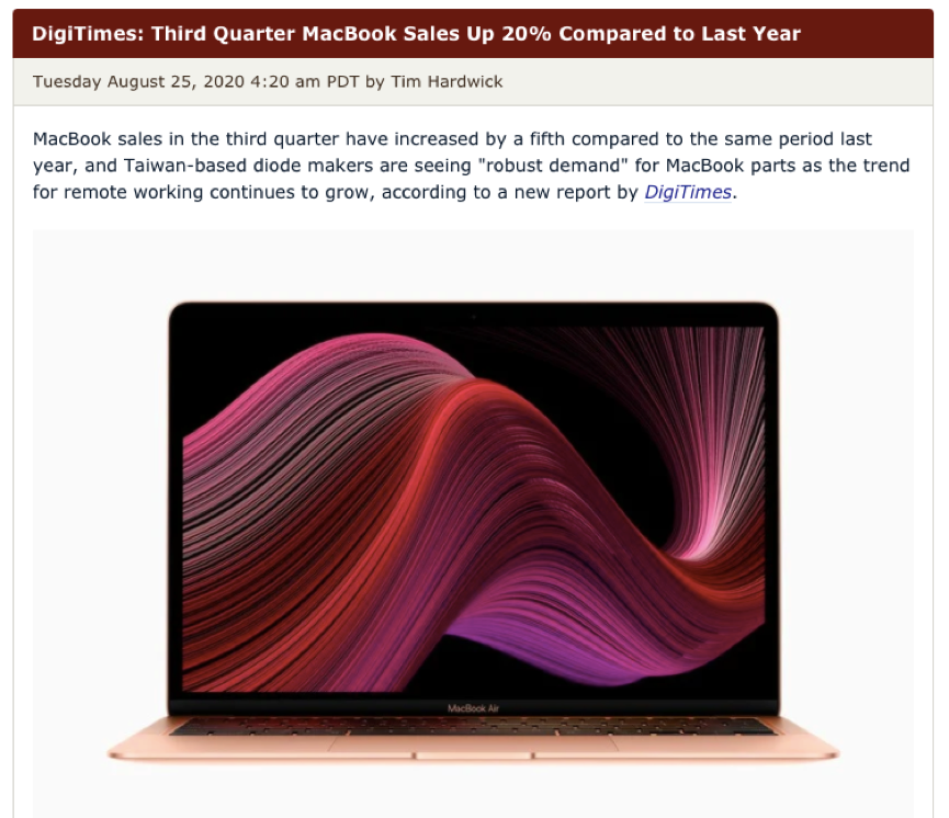 Digitimes报道第三季度macbook销量同比增长20 Apple 苹果 Cnbeta Com