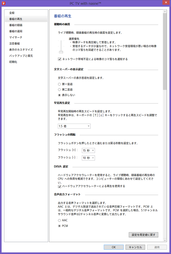 Pc Tv Plus アプリの設定画面の表示方法 設定できる項目 Sony Jp
