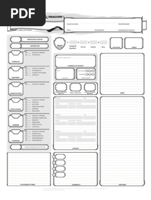 D D Character Sheet 5e Fillabe A4 Paper Size Free Download