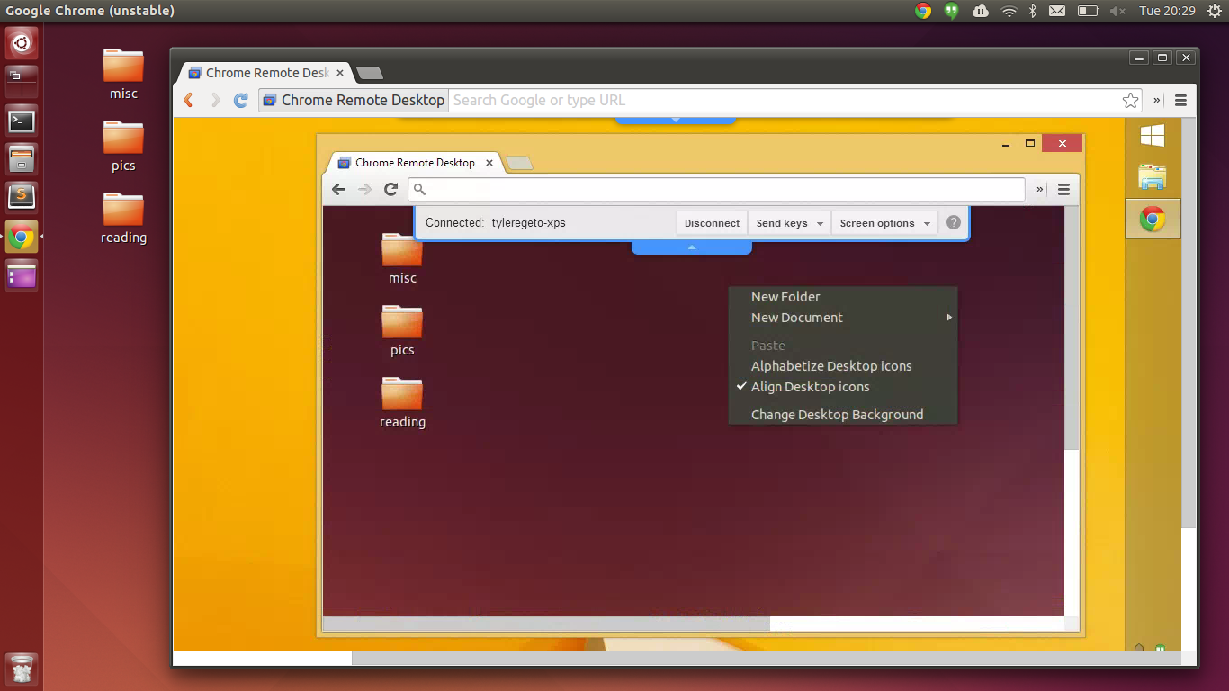 Tyler Egeto On Twitter Nested Chrome Remote Desktop Using Ubuntu From Windows From Ubuntu Http T Co 3o3ev5z6kq