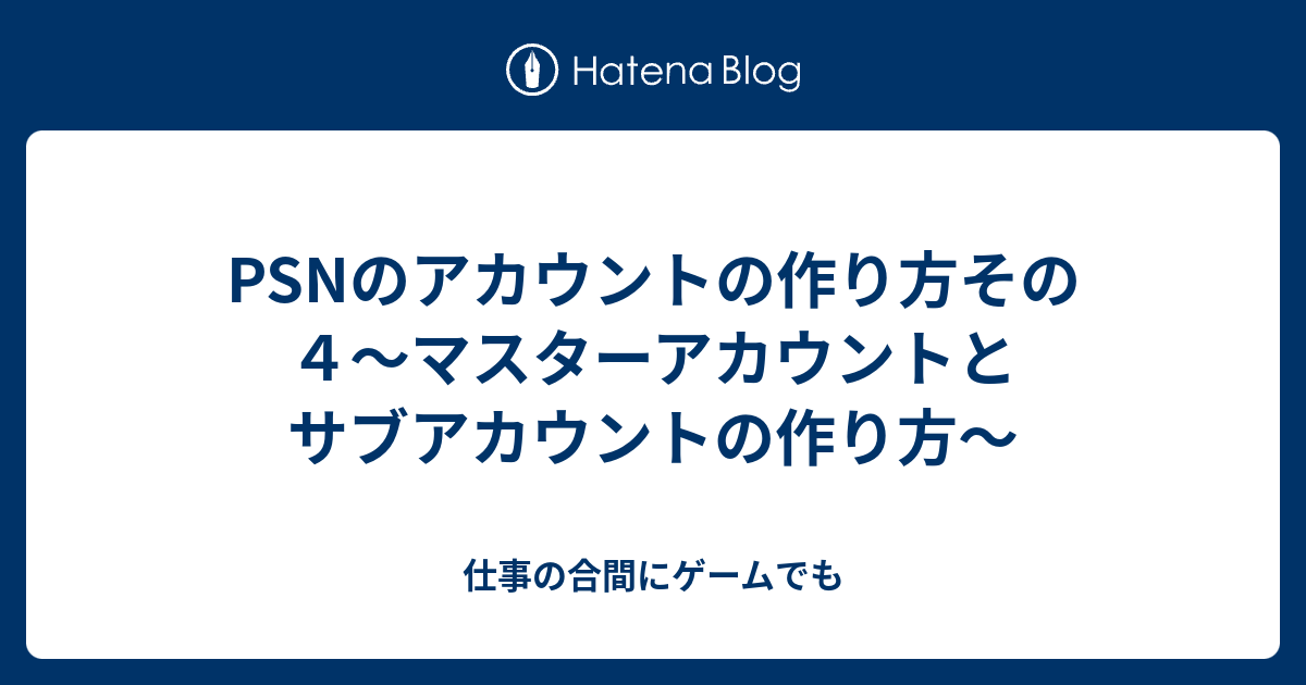 Psnのアカウントの作り方その4 マスターアカウントとサブアカウントの作り方 仕事の合間にゲームでも